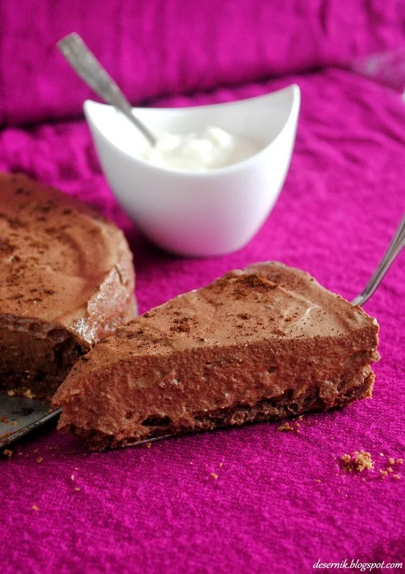 Uprzedzę jednak, że tarta ma kremową i "musową" konsystencje, bowiem tylko zastygająca czekolada nadaje jej zwięzłości,